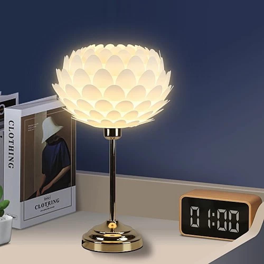 أضف لمسة من الفخامة والرقي إلى منزلك أو مكتبك مع أباجورة مودرن باللون الذهبي. تتميز بتصميمها العصري وإشراقتها الراقية التي تجعلها قطعة ديكورية عملية ومثالية لإضفاء جو من الأناقة والدفء.