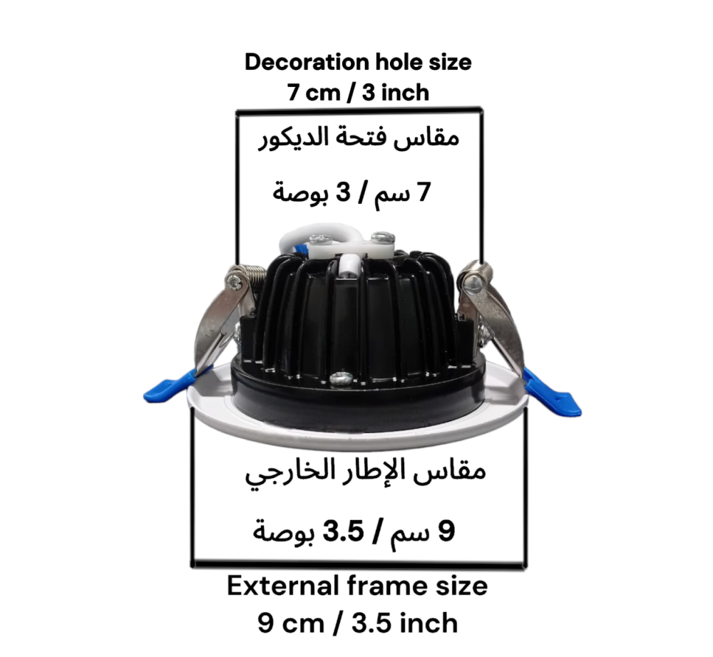 لون الإضاءة كريمي بأبعاد 7 سم ( 3 بوصة ) بقوة 7 واط.